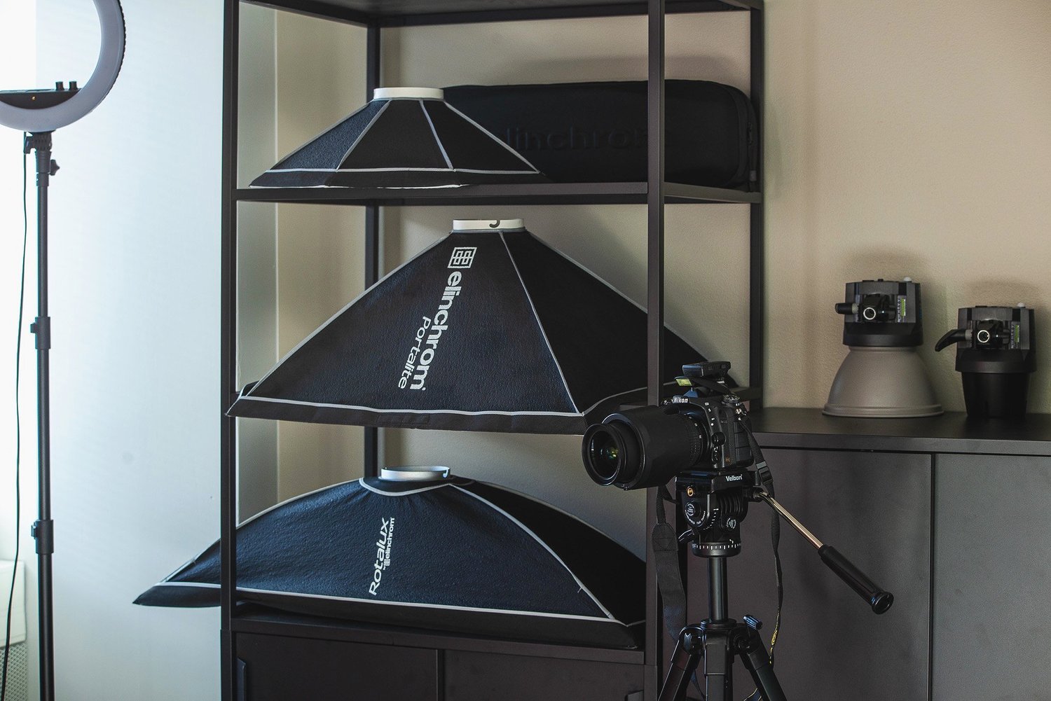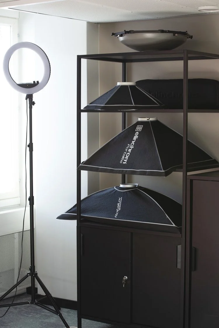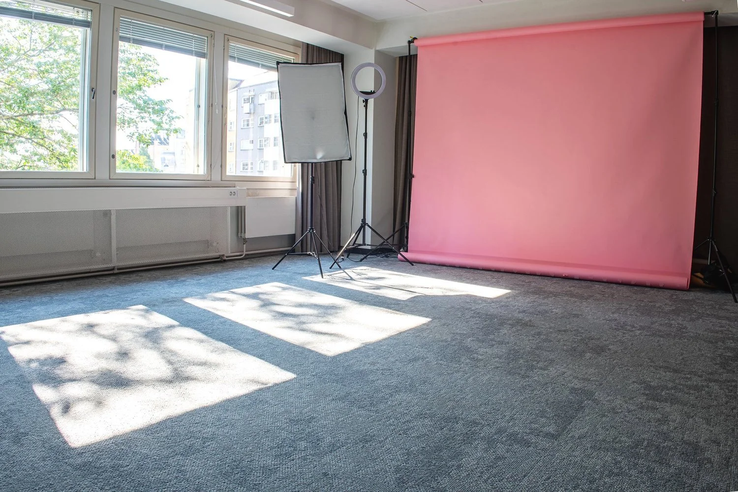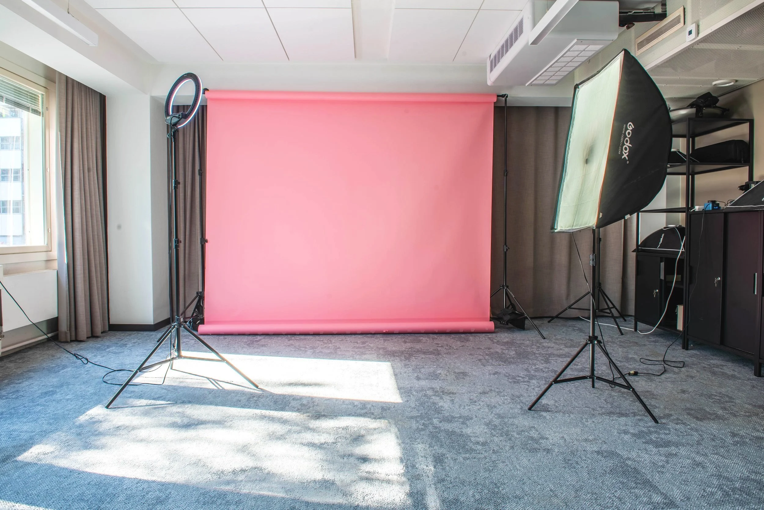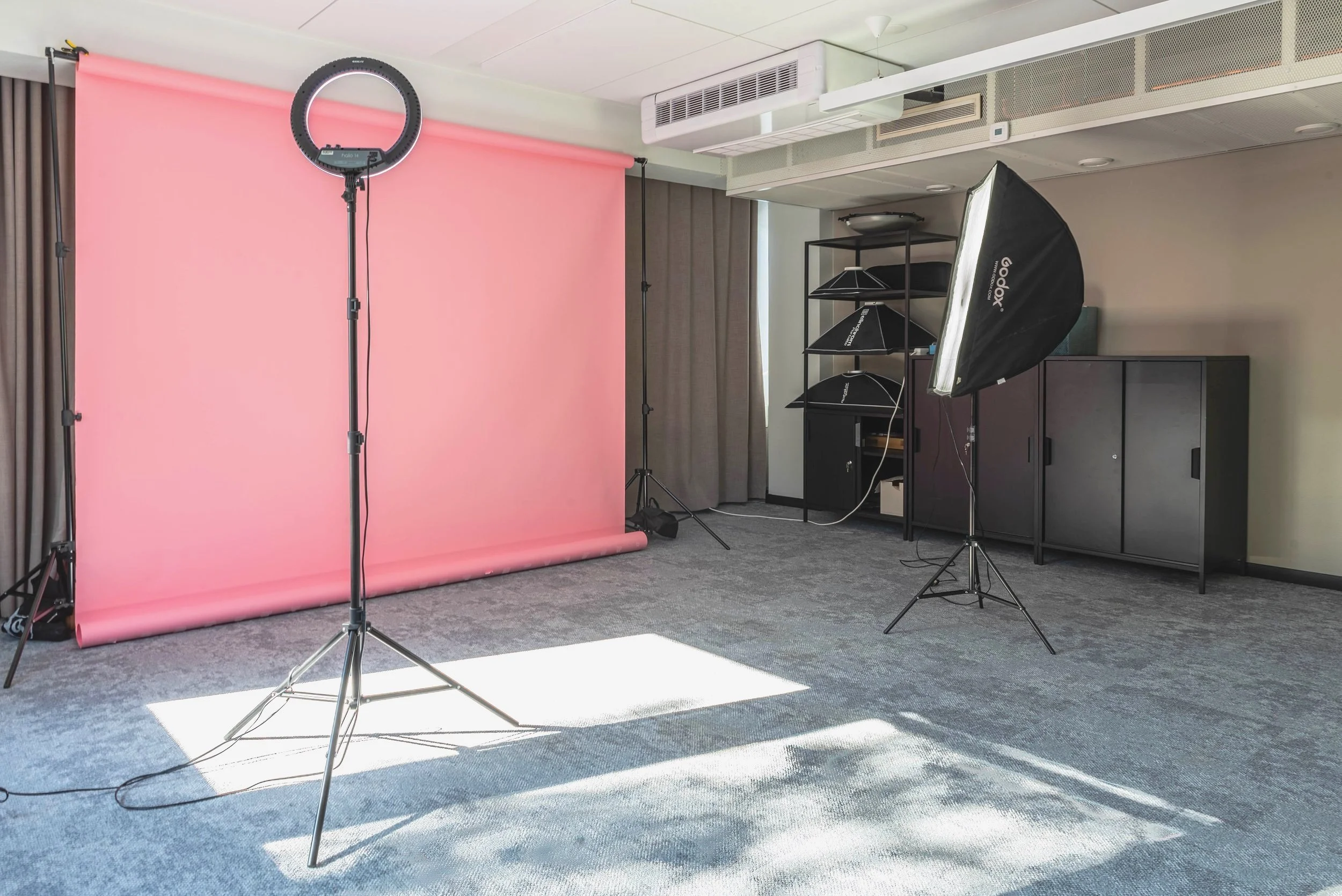 Rent includes the studio with a photo background available in different colors. Lighting equipment can also be rented if needed.